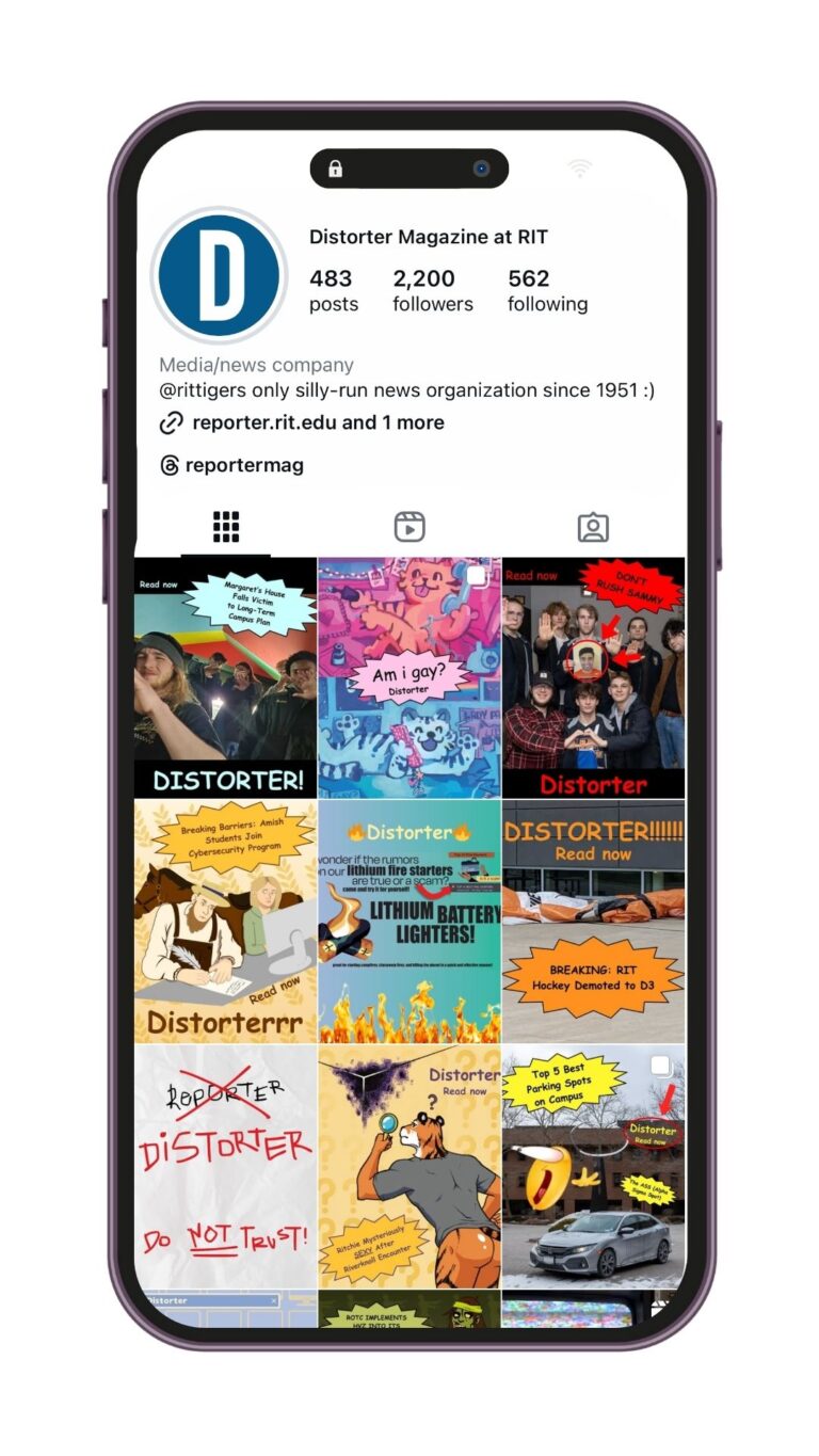 On April 1st, I coordinated a full-day release plan on Instagram and Facebook where fake articles were posted every two hours to maintain engagement. We used hashtags like #AprilFools and #FakeNews to signal satire and drove users to the Distorter website. Our team also promoted the issue on the RIT Reddit, a high-traffic community platform.