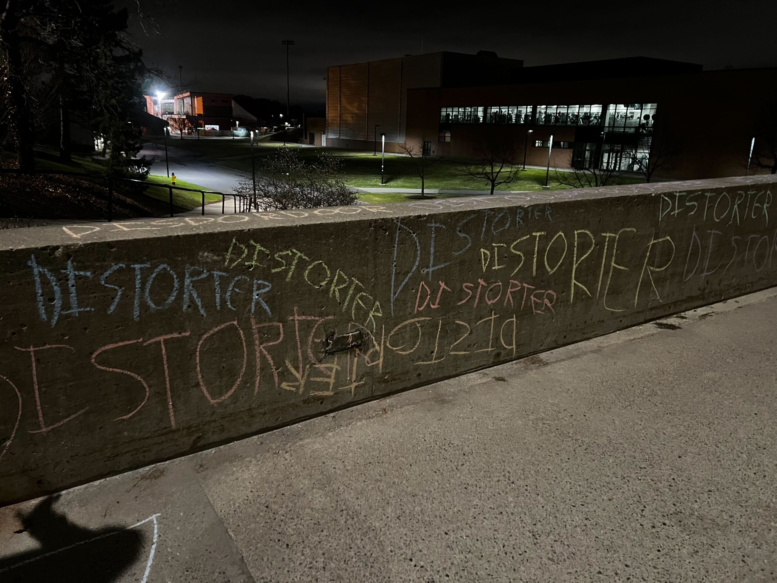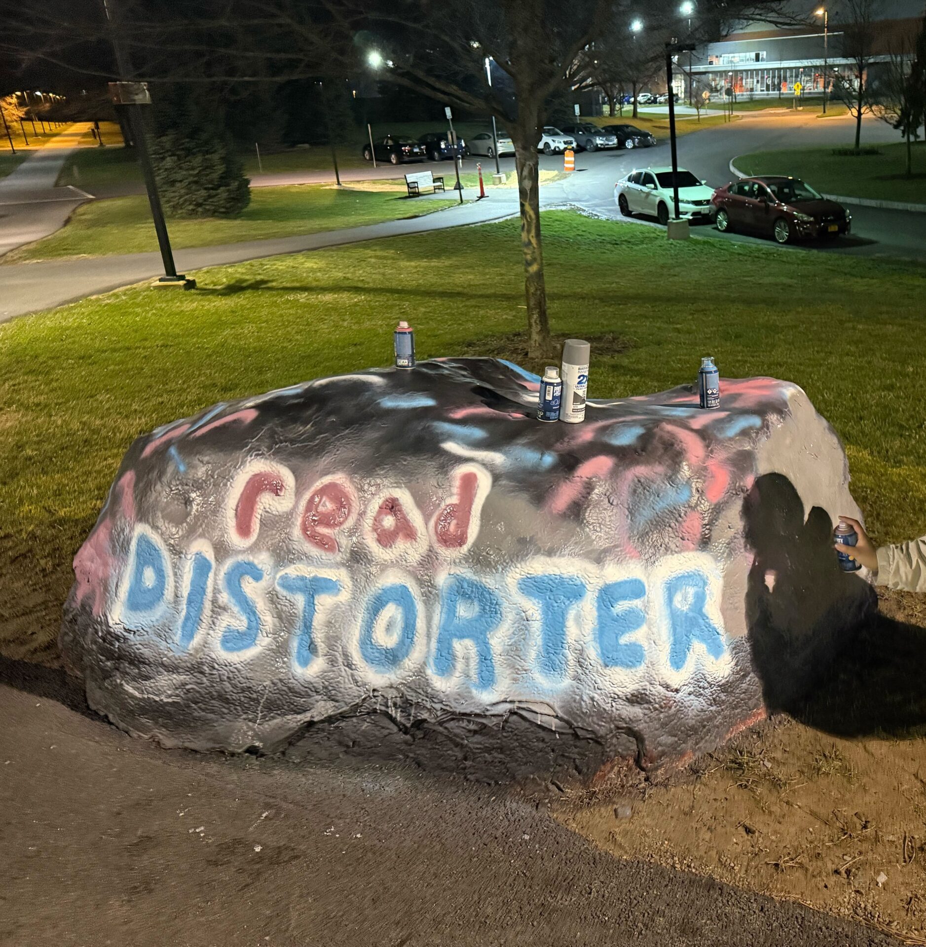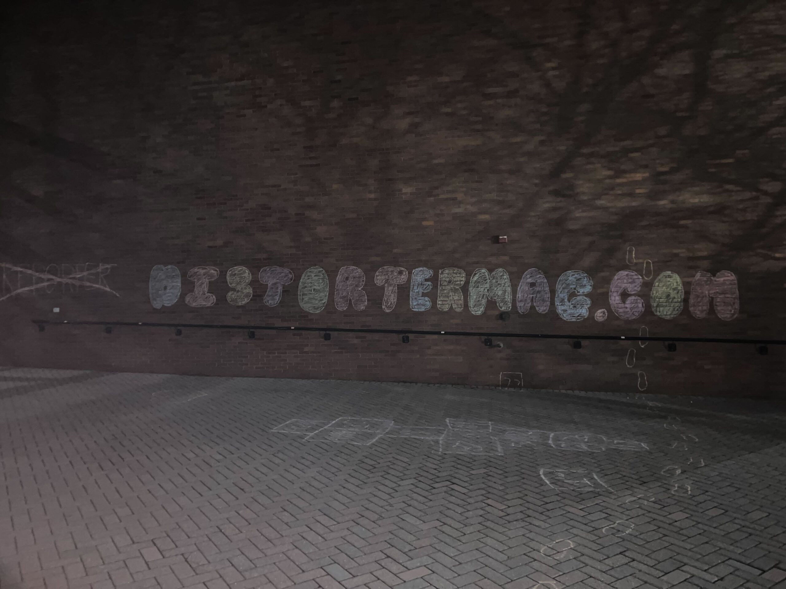 In the lead-up to the event, I coordinated a small team and obtained permission from Facility Management Services to create chalk art and spray-painted messages across campus. We strategically placed “Read Distorter” on the walls in front of the Student Alumni Union and various locations on the Quarter Mile, ensuring students would see the promotion first thing in the morning, building anticipation for the release the morning of April 1st.