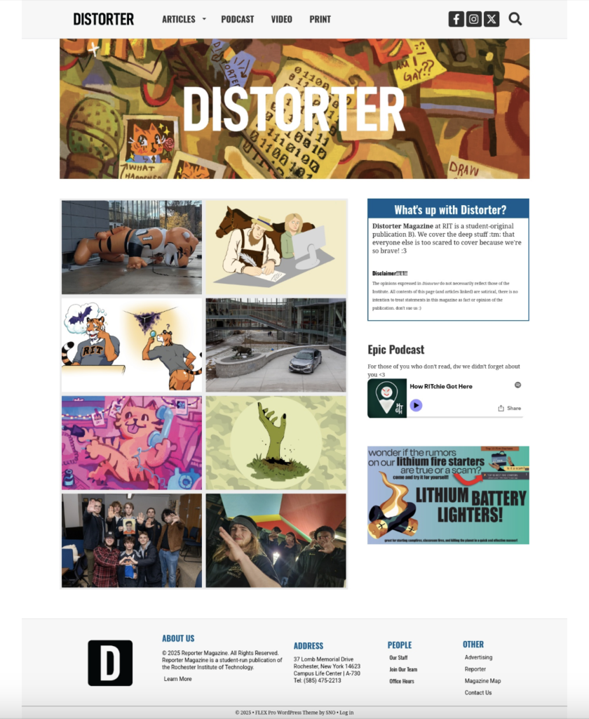In preparation for the event, I oversaw our System Administrator and IT Manager to handle the complete changeover of our website interface, transitioning from Reporter Magazine branding to The Distorter. I conducted incremental checks with them to ensure the branding update was seamless, and the content related to the Distorter issue was uploaded correctly. The switch over of content occurred at 12 a.m. on April 1st.