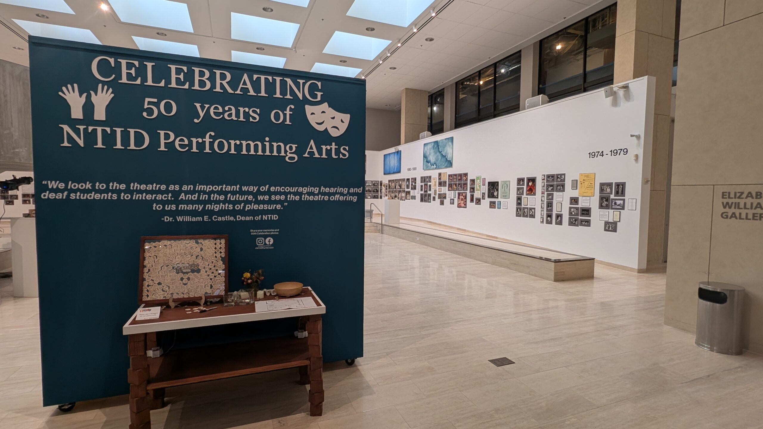 I assisted in curating and installing a retrospective gallery exhibit celebrating 50 years of NTID Performing Arts. The exhibit showcased archival photos, posters, and artifacts that highlighted the program’s rich history and impact within the Deaf and hard-of-hearing community.