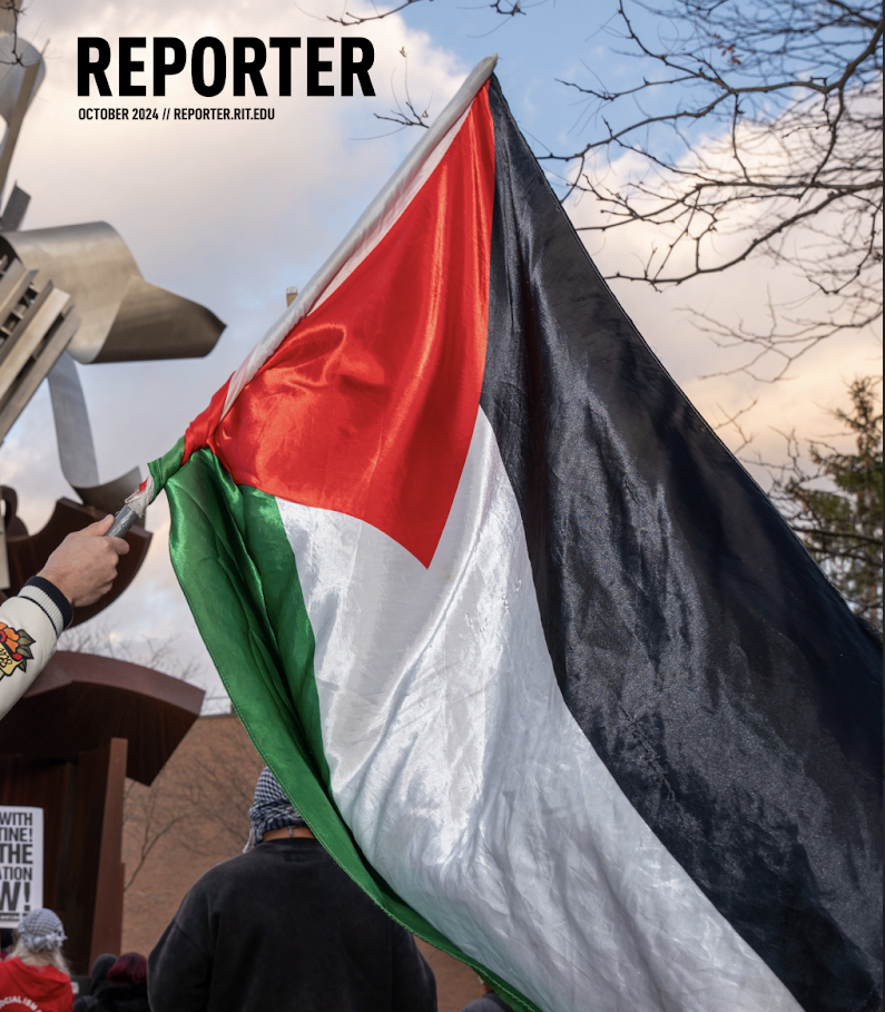 In fall 2024, Reporter Magazine faced a public relations crisis following the release of our October issue, which focused on student activism and protest culture at RIT. The cover featured a photo from a pro-Palestinian protest on campus, showing a student holding a large Palestinian flag. While the image was meant to reflect current campus events, it sparked backlash from several Jewish student groups, who publicly criticized the magazine on Instagram for distributing the issue near the one-year anniversary of the October 7th conflict.